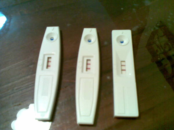 而且當我滴了兩滴下去,試紙迅速的染濕並出現兩條紅色清楚的線,好像在告訴我,「不要在懷疑我們的可信度了好嗎?」