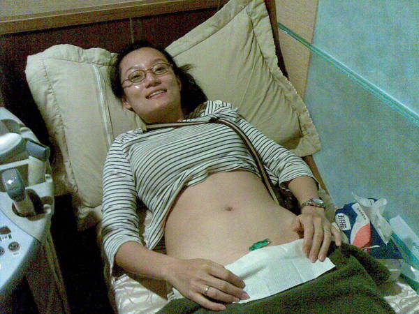 然後,隔天,我們還沒回高雄,我就先打電話預約了婦產科,回到高雄立刻就到婦產科去報到,醫生不來"驗驗看"這招,直接幫我照了超音波,就一下下,在子宮裡找到橢圓形的胚胎。醫生說,已經有5.6周了,正確的話,下週再作一次檢查,應該就可以看到心跳,然後就會給我媽媽手冊。所有的事情都好像不是真的。護士給我四張超音波照片,我跟定鼎看著那四張照片發呆。定鼎說,在醫生透過超音波找到胚胎、看到胚胎的那個霎那,他有腿軟的感覺。我們慢慢的騎著摩托車回家,一路上,我們還在調適我真的懷孕了的這件事。